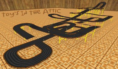 This slot car style track runs entirely on a model layout made up of 130 sections laid end to end. Lap times are around 2:50.00. The Balloon version below is the same track except that the goodyear blimp is replaced with a balloon when the track pod is mounted above your startup.pod Add your comments to the Review |